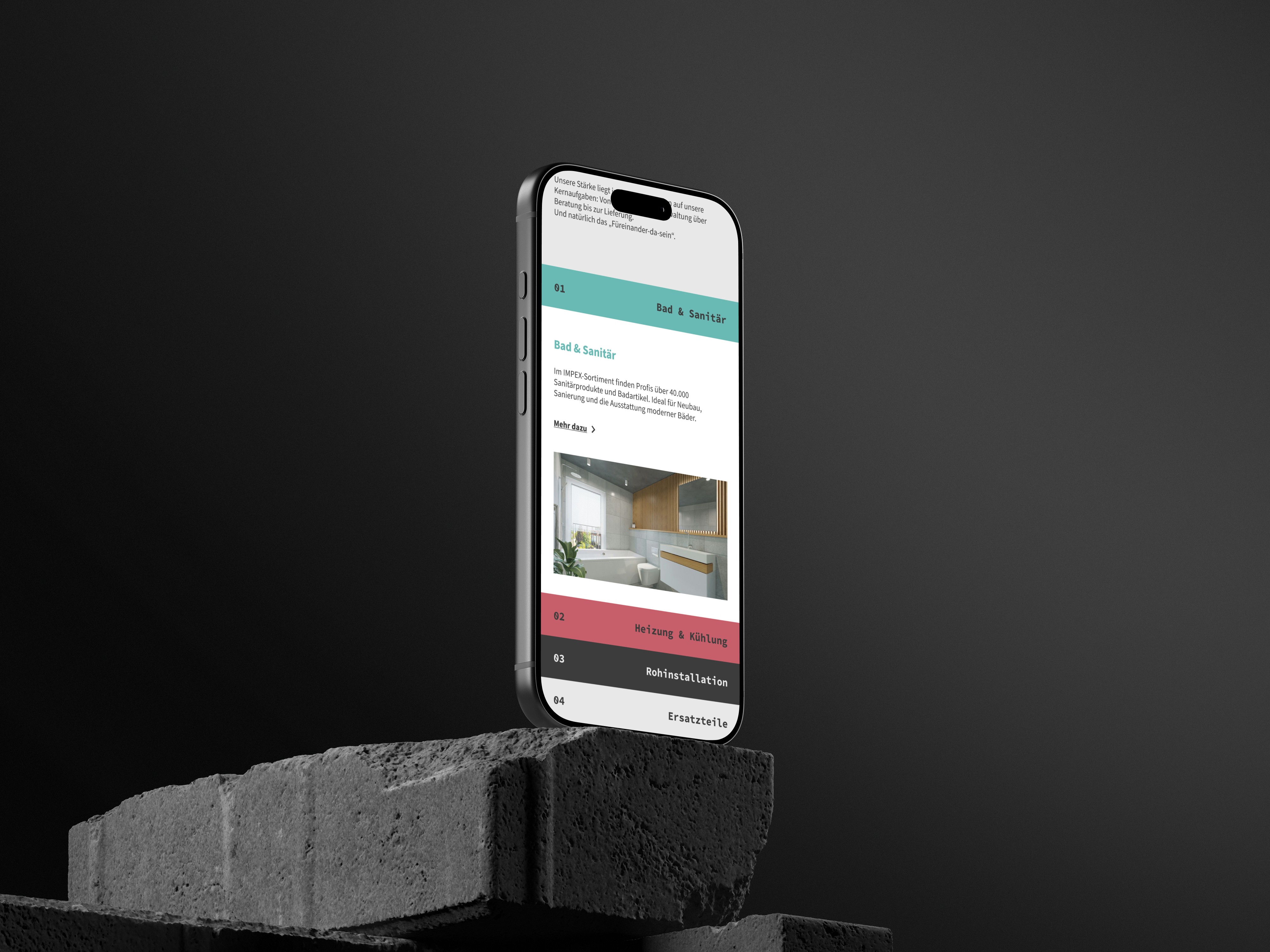 /// IMPEX is one of Austria's leading wholesalers for sanitary and heating products, with over 26 locations nationwide and a history going back to 1962. The redesign wasn't just a visual refresh — it was a full structural rethink of how a B2B-first company communicates with multiple audiences online, built on a freshly redesigned corporate identity.