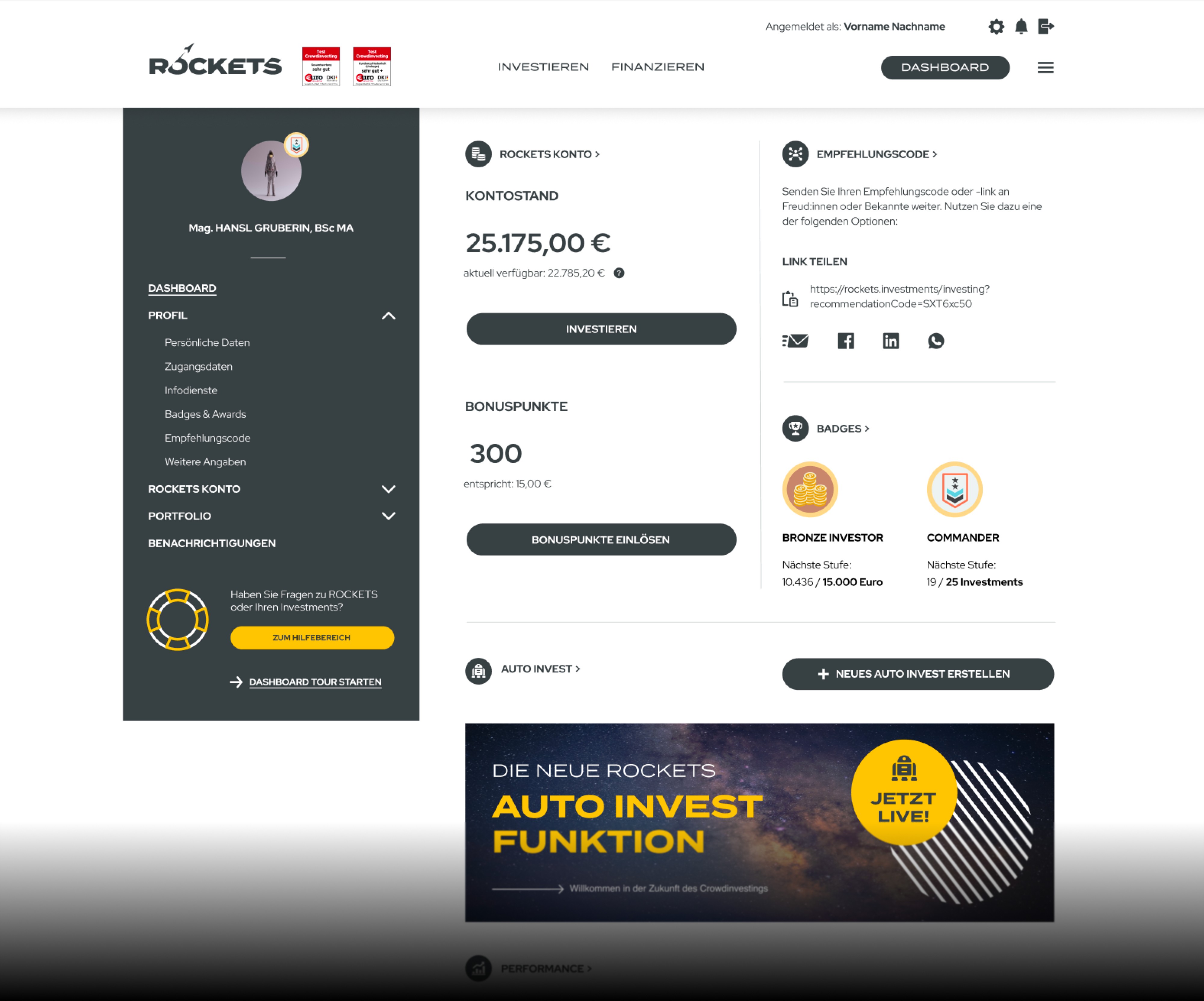 /// ROCKETS Investments is Austria's largest crowdinvesting platform, connecting thousands of small investors with businesses, real estate projects, and sustainable startups. Following a strategic decision to unify three previously independent platforms under one roof, the product needed a complete rethink — not just visually, but structurally. The goal was to create a unified investment experience that felt familiar to existing users while being intuitive enough for newcomers.